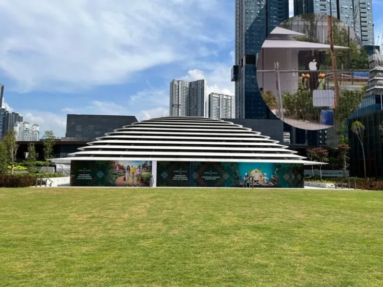 While the famous Apple logo is nowhere to be seen on the building itself, the official stores tend to have unique designs. The rumoured store, located at the 10-acre rooftop park called TRX City Park, has a similar layered design to the one in Singapore. If that isn’t convincing enough, someone managed to catch a glimpse of workers setting up the Apple logo in front of the store.