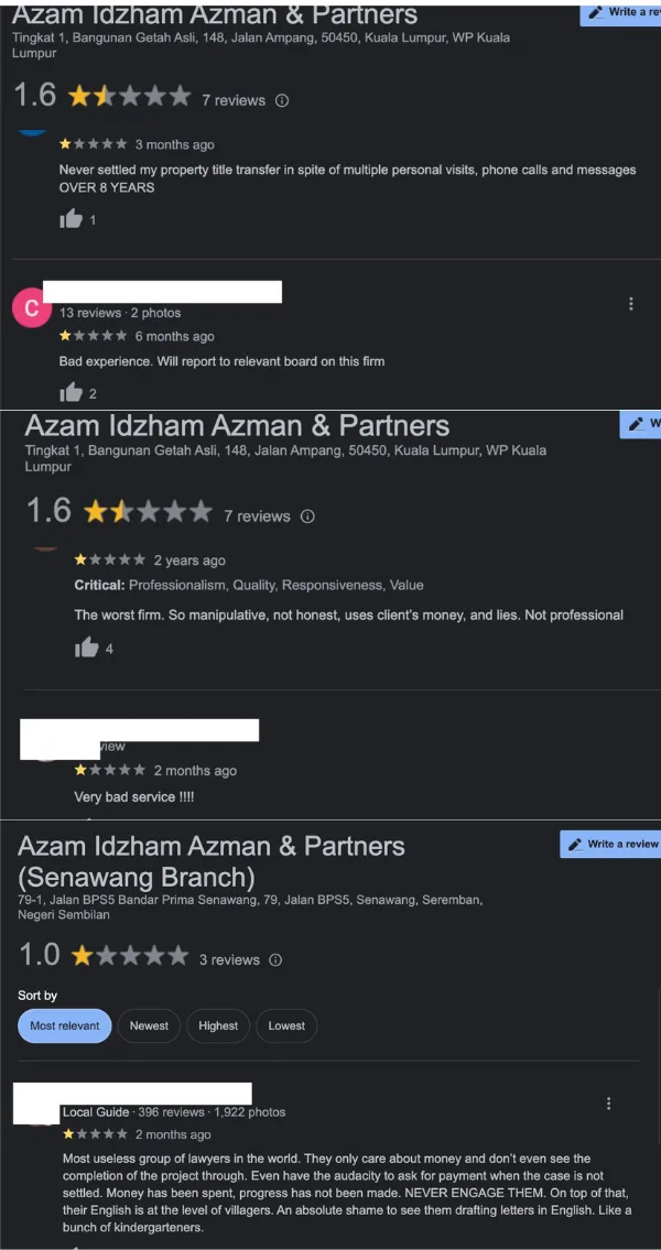Azam Idzham Azman & Partnerslaw firm in Kuala Lumpurlaw firm in Senawanglawyers stealing from client