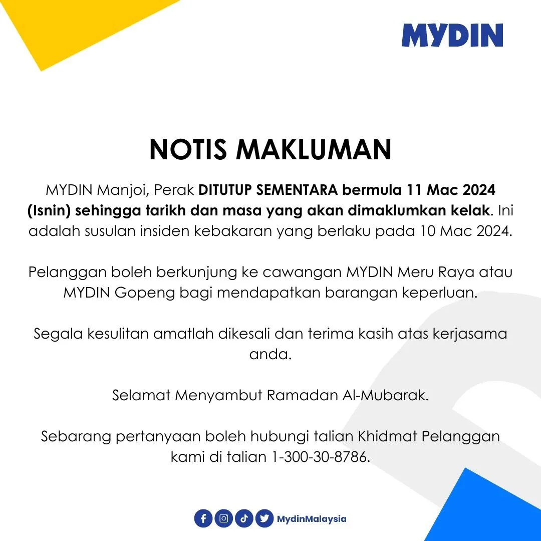 Mydin MalaysiaMYDIN ManjoiMYDIN Manjoi closureMYDIN Manjoi fire