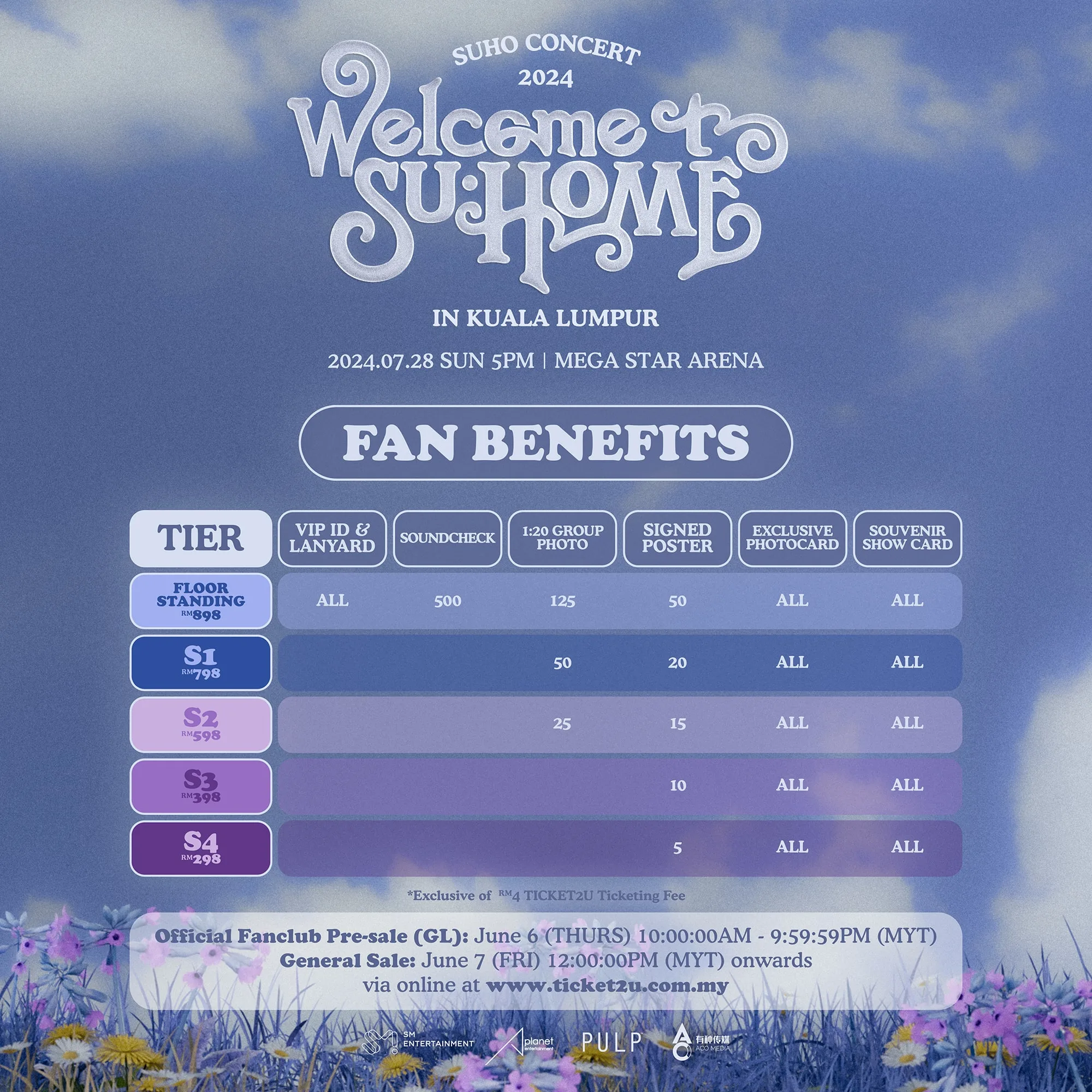 - Ticketing: Floor Standing: RM898, S1: RM798, S2: RM598, S3: RM398, S4: RM298