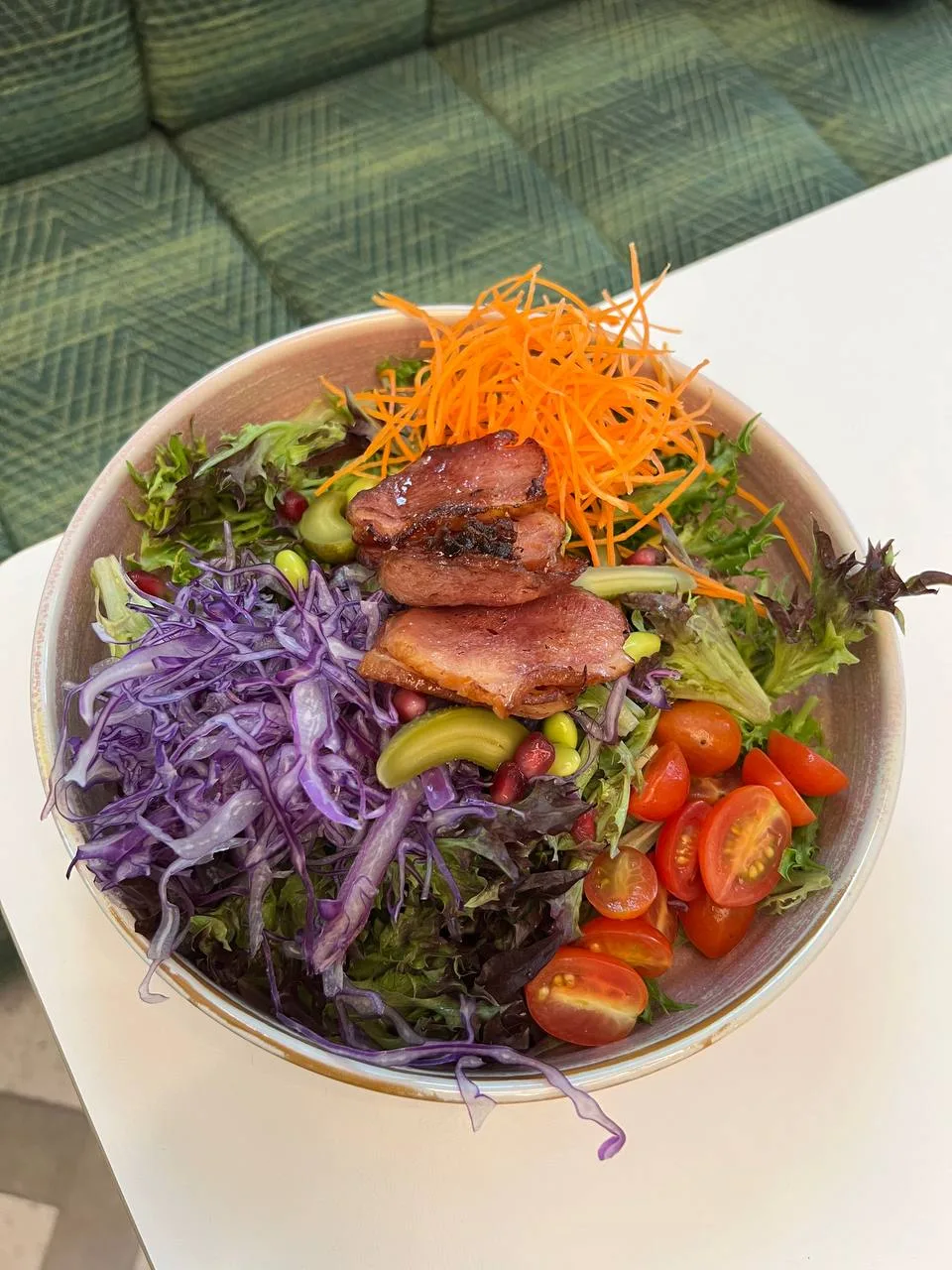 For meat lovers, the Grillhouse Platter comes with seasoned chicken wings, grilled lamb brochette and jumbo chicken sausages with Velvet’s signature dip. We opted to pair these meat-heavy eats with our salad for a better balanced meal.