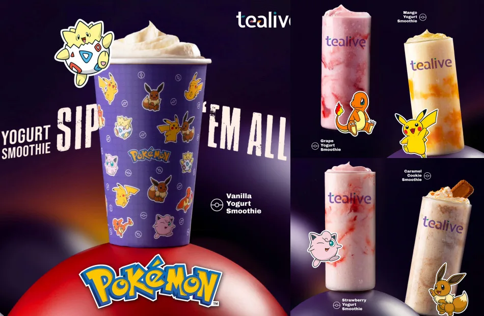 Tealive has launched the Sip ‘Em All Yoghurt Smoothies, a series of five Pokémon-themed flavours that offer a delightful variety for customers to enjoy. Each drink comes with an optional cooler bag, perfect for keeping your beverage chilled in the warm weather. For Pokémon enthusiasts, this collaboration is a dream come true, offering the chance to have your very own Pokémon characters.