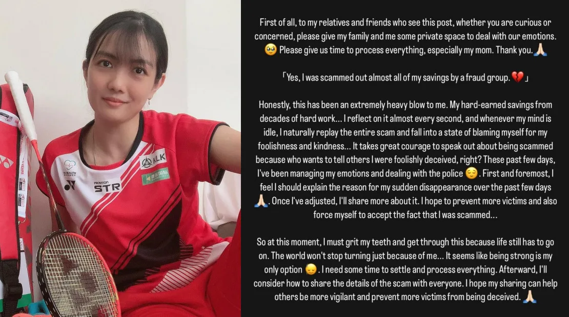 “Yes, I was scammed out of almost all of my savings by a fraud group. My hard-earned savings from decades of hard work. Whenever my mind is idle, I naturally replay the entire scam and fall to a state of blaming myself for my foolishness and kindness,” she said. While she did not specify the amount she had lost, according to Badminton Planet, it was believed to be approximately RM400k.
