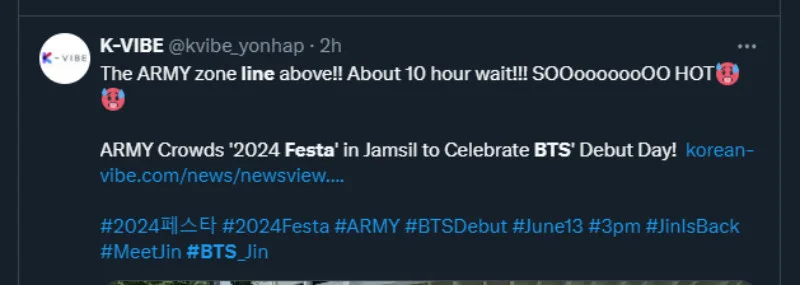 The celebration continues as today is BTS’s 11th Anniversary but it is also the day when fans get to meet Jin in person at the annual BTS Festa event! According to the announcement made last week, about 1000 lucky fans will get the chance to receive a hug from the 31-year-old singer during the 3-hour meet-and-greet session but first, many would have to endure waiting hours in line to even reach the entrance of the venue.