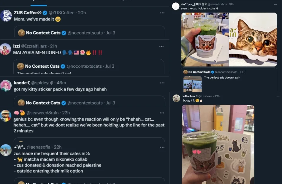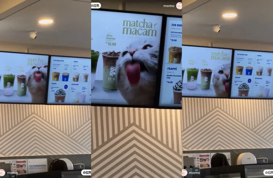 The brand recently launched their new collaboration with Niko Neko Matcha, a local brand that offers different variations of matcha drinks, which feature adorable cat merchandise. As a way to promote this campaign, ZUS Coffee showcases a video of a cat licking the menu screen at every outlet and although this advertisement has been up for quite some time, it has recently reached the international level.