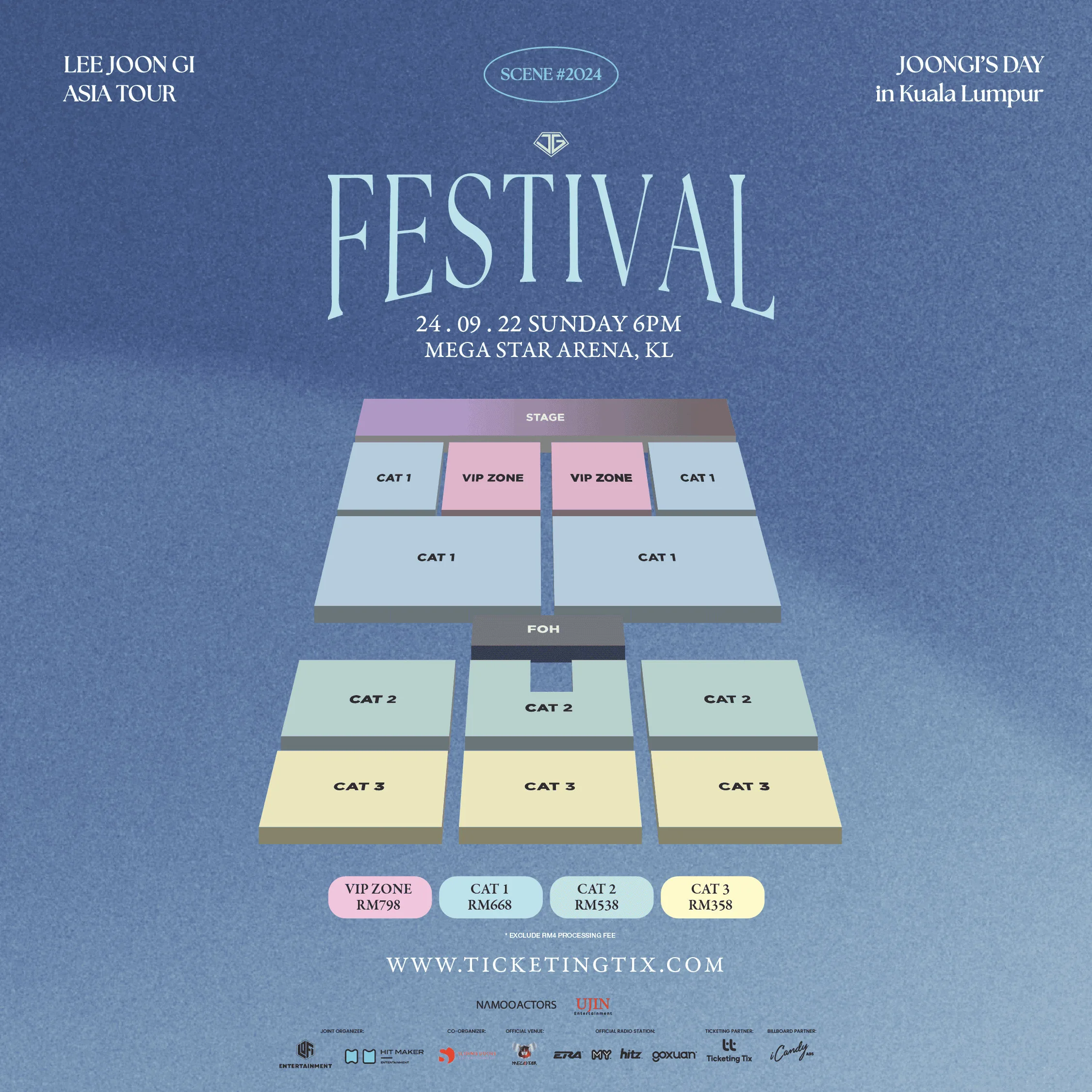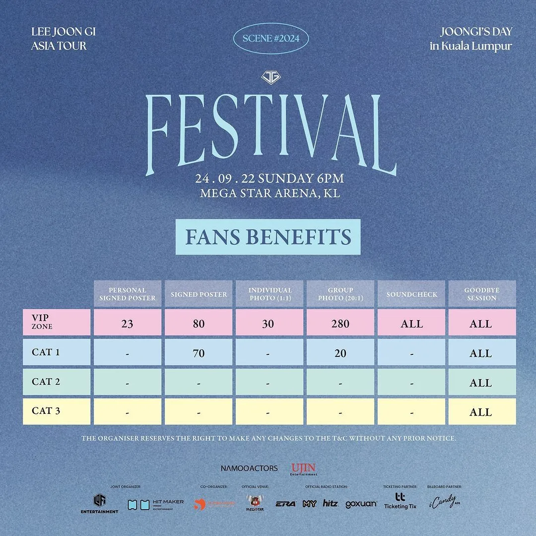 - Ticketing: VIP: MYR798, CAT1: MYR668, CAT2: MYR538, CAT3: MYR358