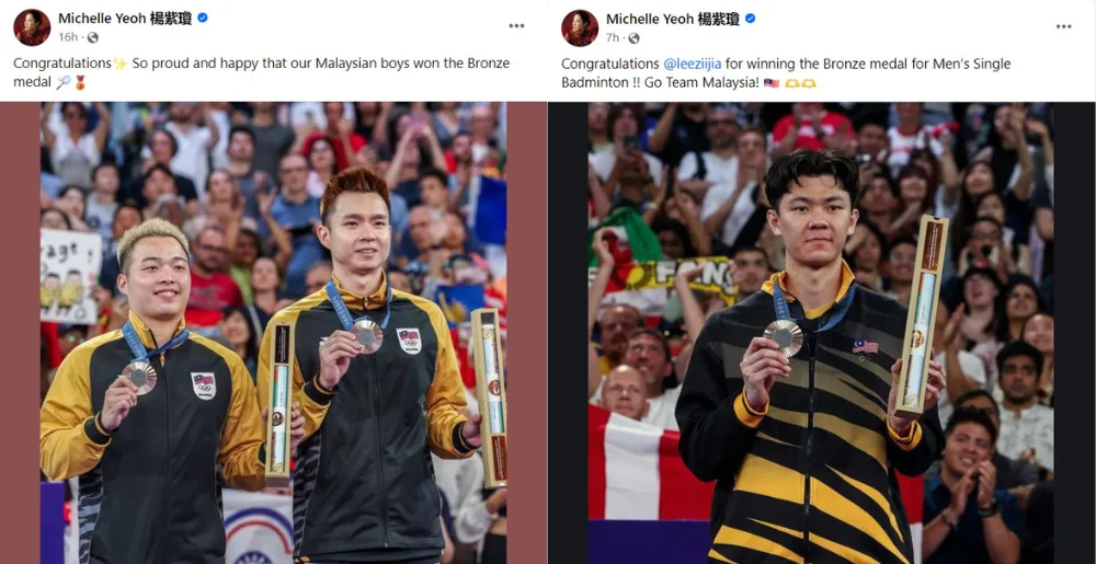 Another renowned public figure who congratulated the athletes on their well-deserved wins was Academy Award winner Michelle Yeoh. The actress, who is also a member of the International Olympic Committee, took to social media to congratulate Aaron Chia and Soh Wooi Yik. She wrote, “Congratulations. So proud and happy that our Malaysian boys won the Bronze medal.” She also shared cheers for Lee Zii Jia, writing in a separate post, “Congratulations Lee Zii Jia for winning the Bronze medal for Men’s Single Badminton!! Go Team Malaysia!”.