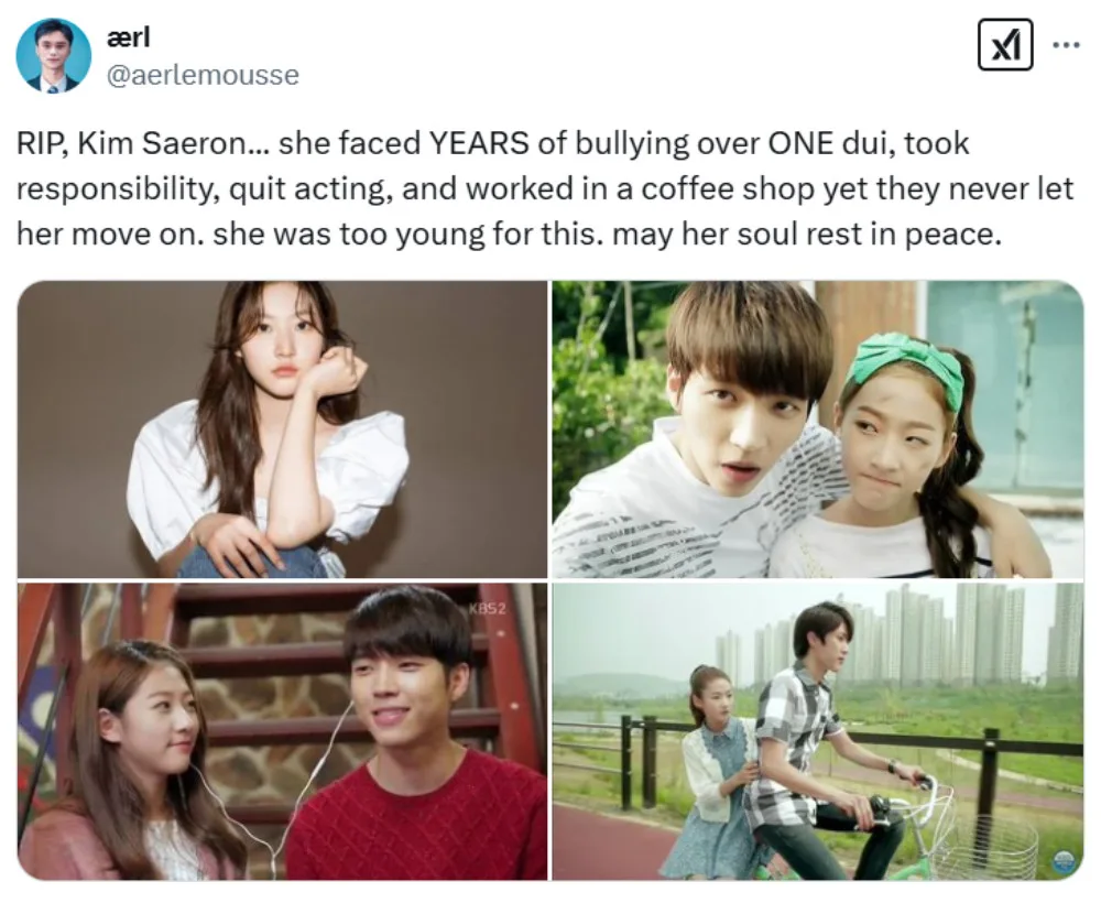 Before her death, Kim Saeron announced her plans to return to the entertainment industry following years-long hiatus. In 2022, the late actress announced her break from acting after getting caught driving under the influence. After her death, a close friend revealed that the star had changed her name to Kim Ah Im (김아임) and had planned to open a cafe, in addition to returning to acting.