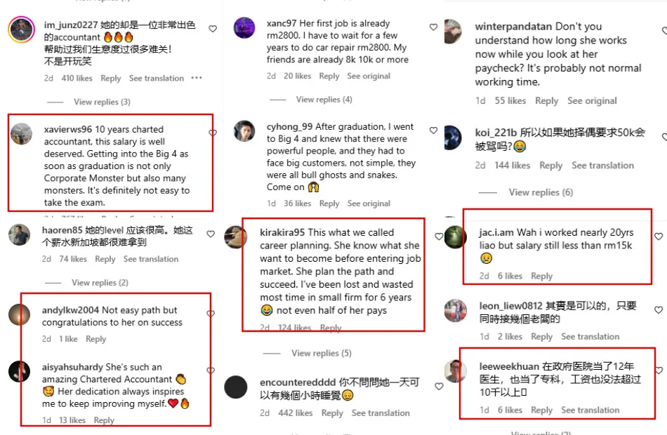 The video then sparked discussion among netizens, with many commending her for her achievements. Others pointed out that starting out at one of the Big Four with a starting salary of RM2,800 after graduating was a significant stepping stone for the woman, as securing employment at any of these firms is already challenging. There were also netizens who lamented that they don’t make as much as the chartered accountant despite working for more than a decade.