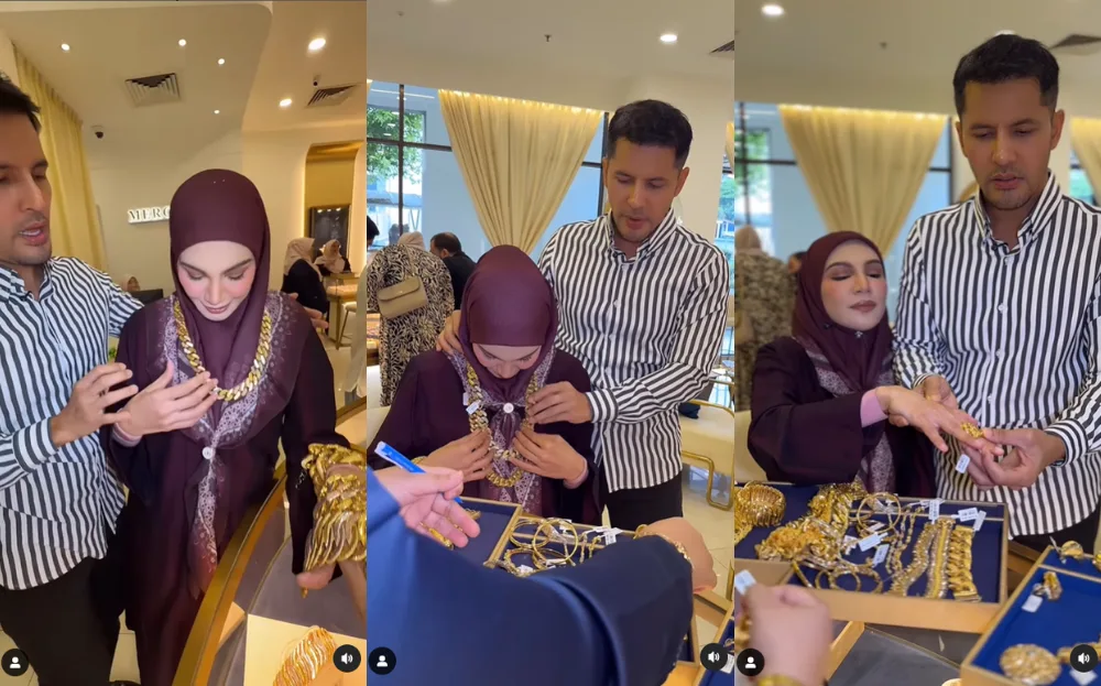 The video continues with Shahida trying on more jewellery, including necklaces and bracelets. At one point in the video, the mother-of-three said she doesn’t need more jewellery, to which Aliff responded, saying the gold could serve as an asset. The next scene revealed that Aliff spent RM1.5 million on jewellery for his wife before ending with a clip of the 38-year-old putting on an anklet on Shahida.