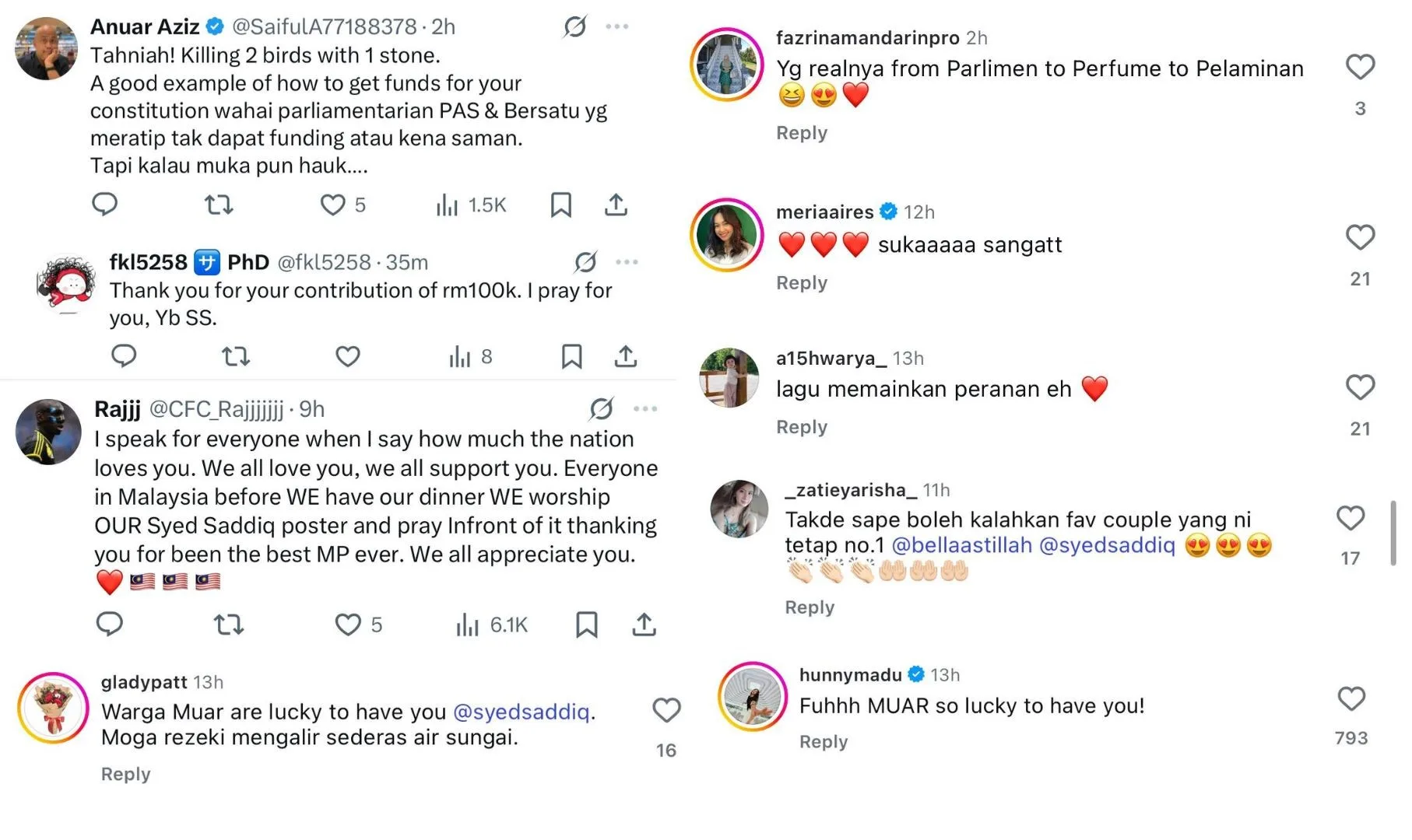 Fans and netizens quickly flooded the comments section, praising Syed Saddiq for his generous contribution. One commenter remarked that it was an excellent example of fundraising for the community, while another joked, “From Parliament to Perfume to Pelaminan,” with pelaminan referring to the wedding aisle. The overwhelming positivity in the comments highlighted how much the public appreciates leaders who use their influence for the greater good.