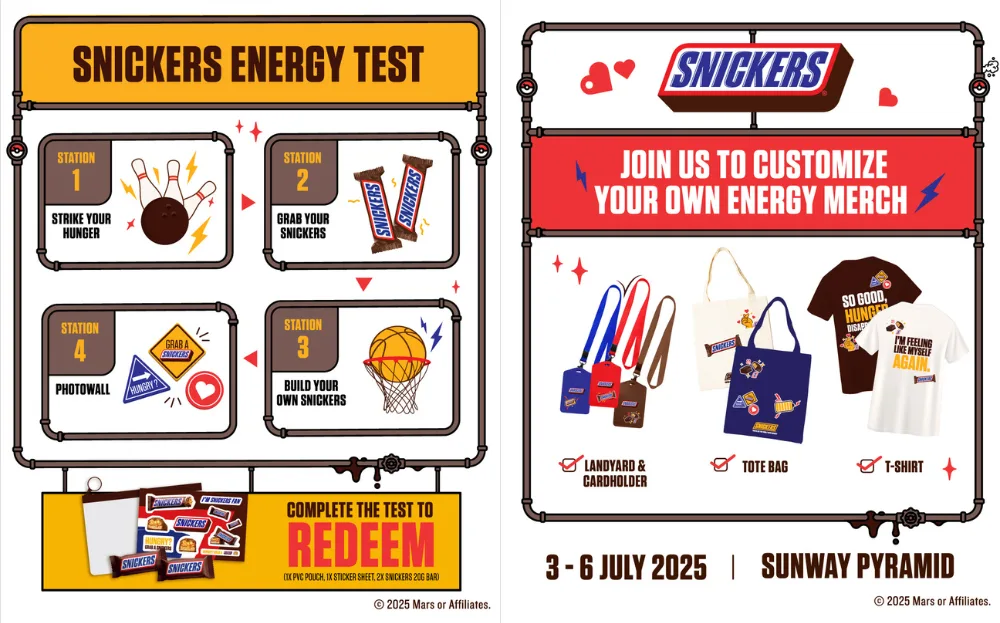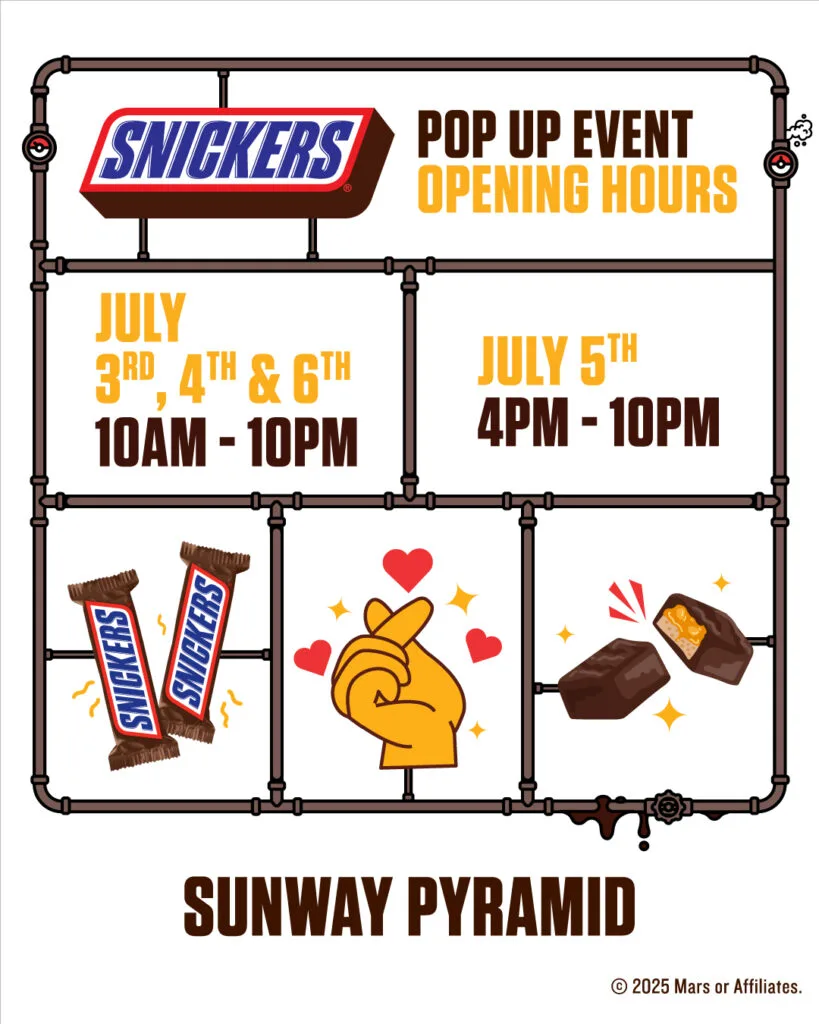 The SNICKERS® Pop-Up Event will take over the LG2 Blue Concourse at Sunway Pyramid from 3rd to 6th July 2025. The exclusive pop-up will feature hunger-crushing games, exclusive merchandise, and delicious goodies. Fans can also check out the various SNICKERS Energy Stations to unlock limited edition prizes.