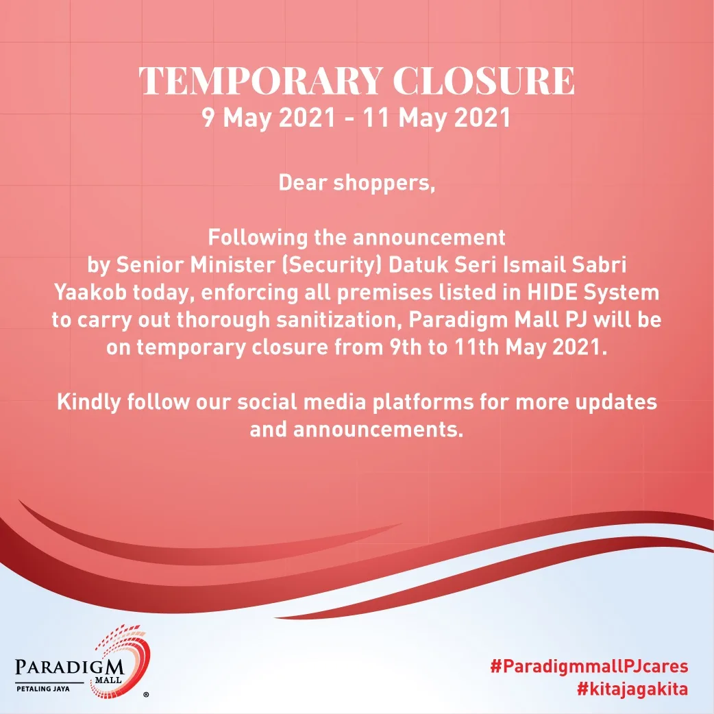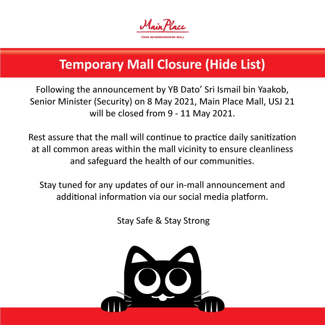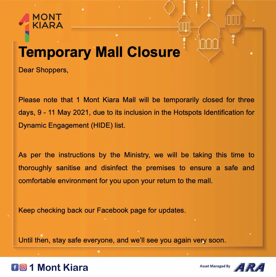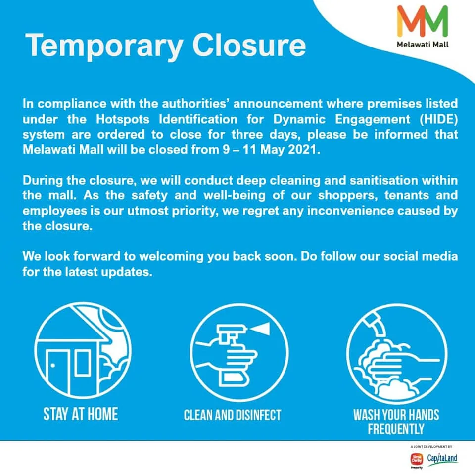 Yesterday (Saturday, 8th May), a Hotspots Identification for Dynamic Engagement (HIDE) list was released containing all the Covid-19 hotspots in Malaysia. As such, those under the HIDE have been ordered to close for 3 days by the government.