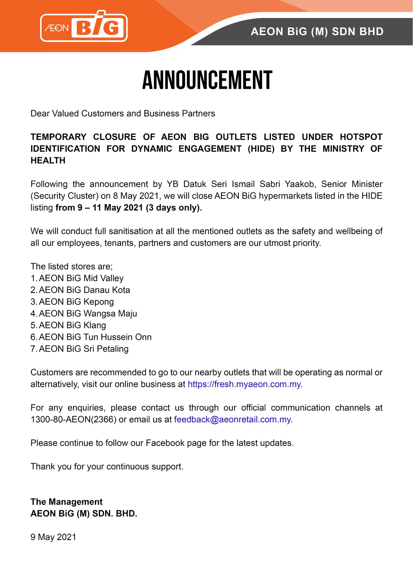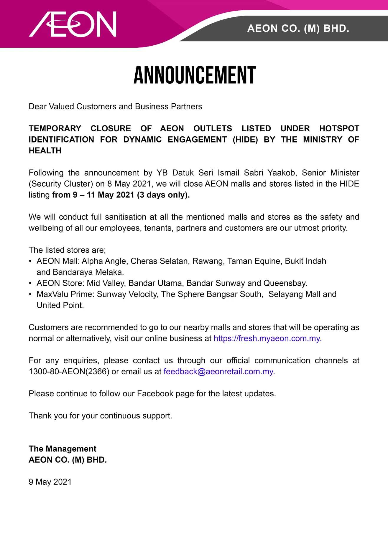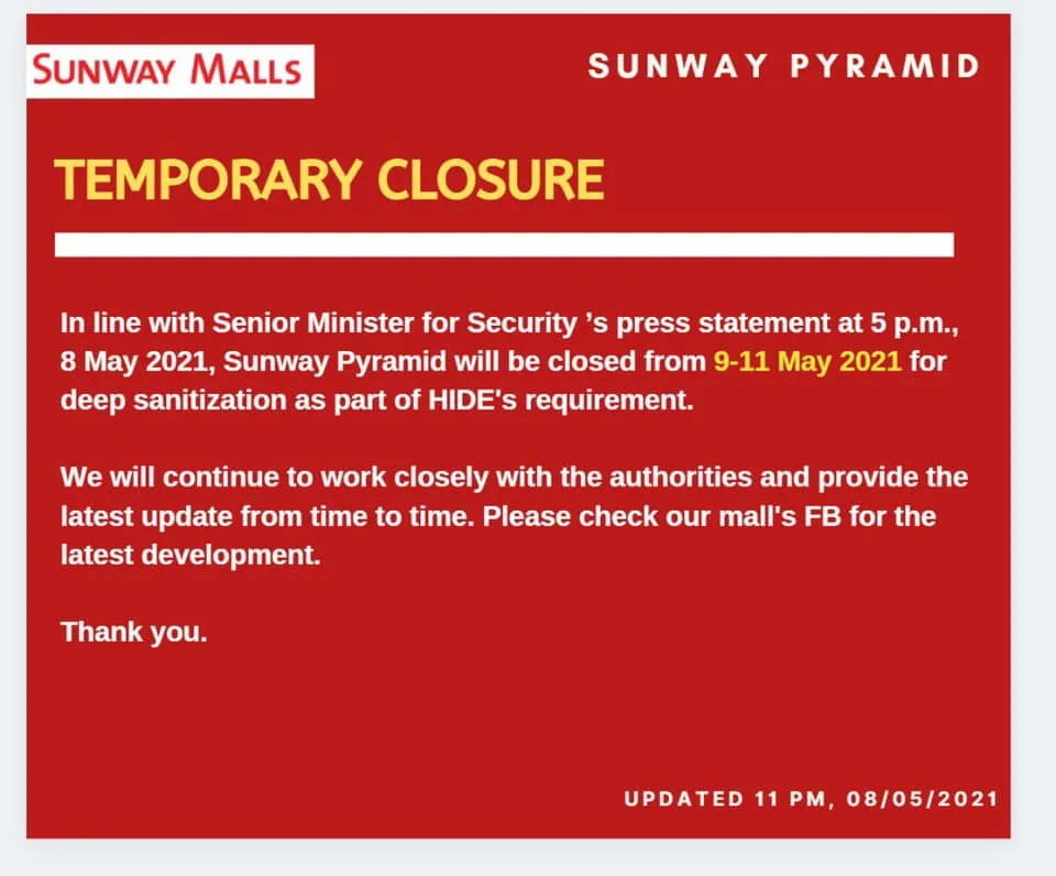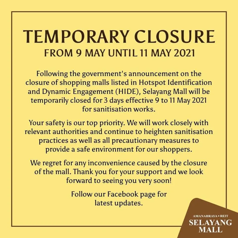 Yesterday (Saturday, 8th May), a Hotspots Identification for Dynamic Engagement (HIDE) list was released containing all the Covid-19 hotspots in Malaysia. As such, those under the HIDE have been ordered to close for 3 days by the government.