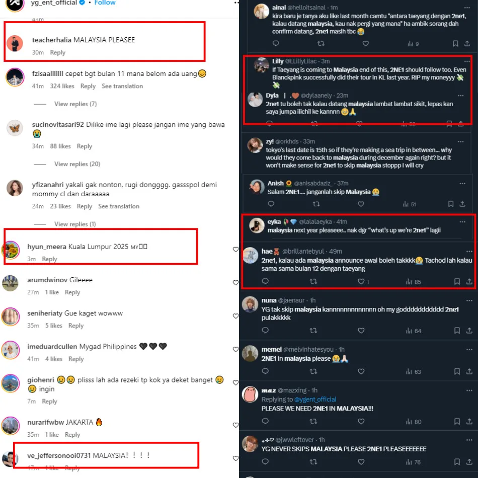 Fans from both aforementioned countries were obviously ecstatic after hearing the exciting news but this now begs the question, where will the iconic group head next? Will Malaysia be included on this list? As seen in the screenshots below, Malaysian fans have been flooding the comments section on the official social posts. Many were manifesting for the legends to perform in our country in 2025 as it would give fans more time to save up for the concert.