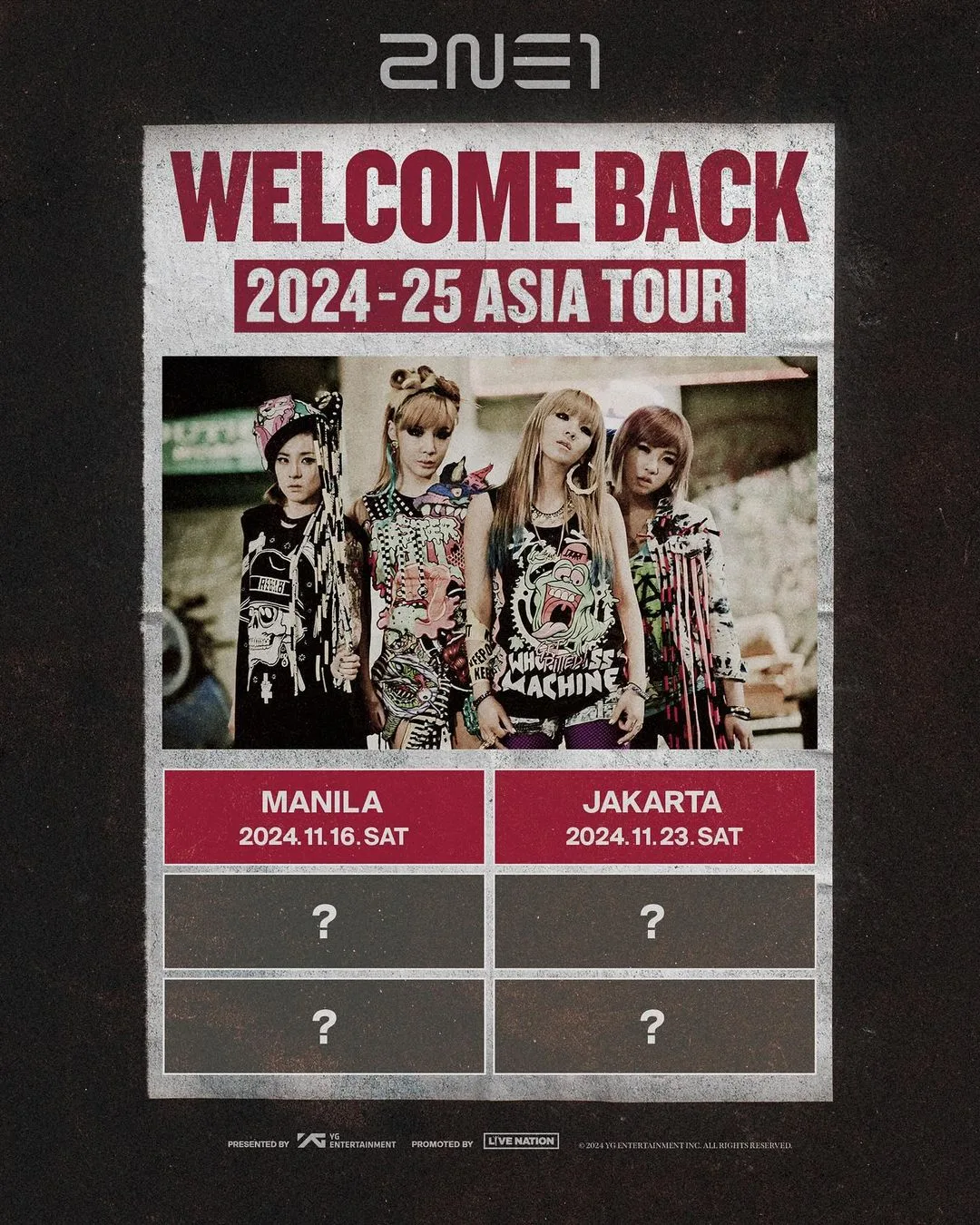 Earlier today (Friday, 6th September), YG Entertainment officially announced more dates for 2NE1’s upcoming reunion Asia tour. After kicking off their concert in Seoul, the members will be heading to Manila, The Philippines in November followed by Jakarta, Indonesia later that month. From the post, only 4 more slots are yet to be unveiled.