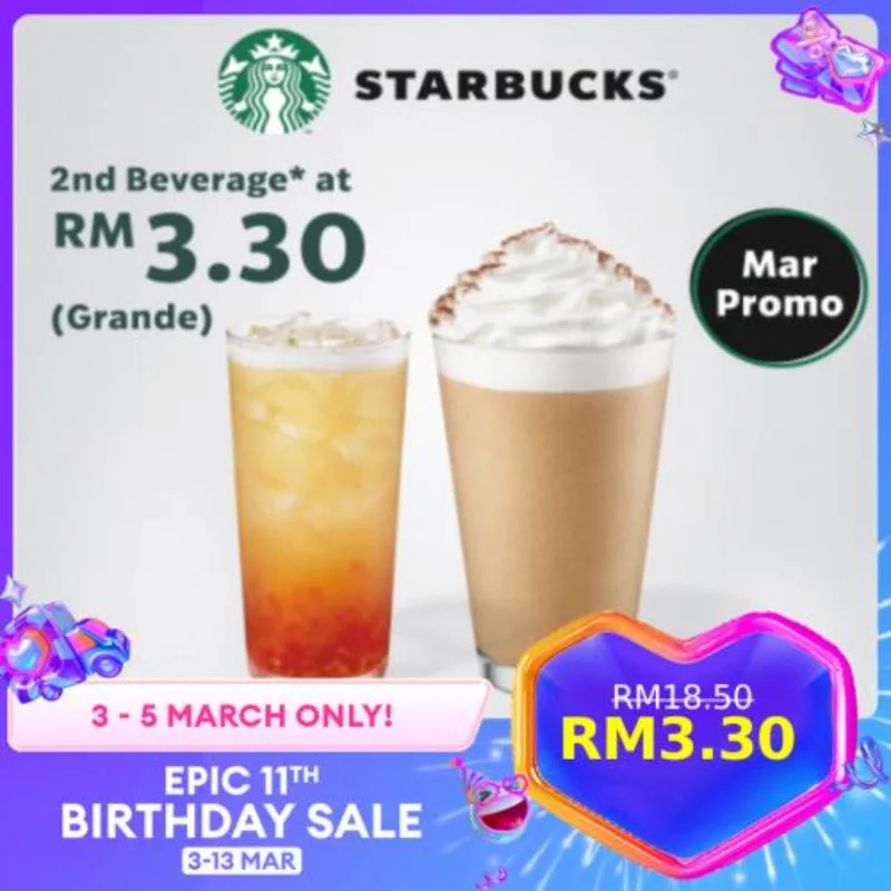 3.3 Price: Second Beverage at RM3.30 (Original Price: RM18.50)