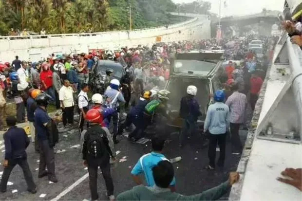 Motorists on their way to work were caught off-guard by the congestion as the busy main road that they usually use was forced to be closed by the police. The congestion also caused office workers to be late for work.