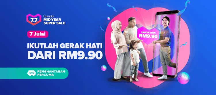 - First 77 Lazada wallet customers who use their wallet to purchase items from Mid-Year Sale deals between 3rd – 6th July will get RM77 credited into their wallet