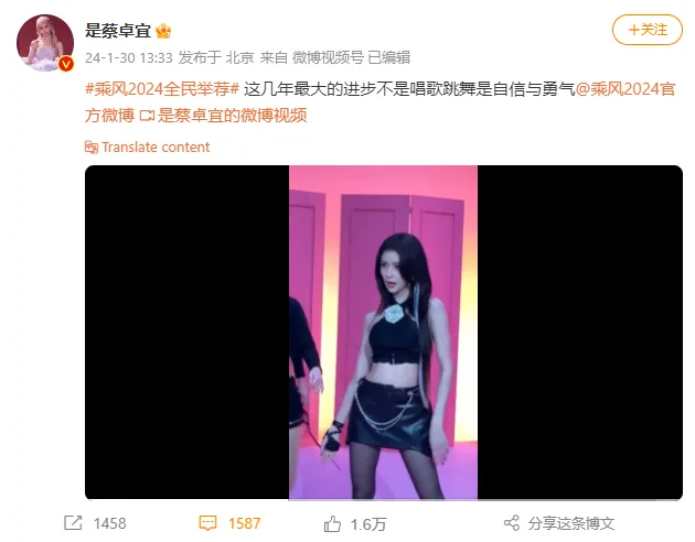 The 29-year-old singer also included a clip from her song’s music video featuring her dancing and singing. Previously, Joey had appeared on variety show “中国有滋味 (A Delicious Guess)” with former participants of “Ride the Wind 2023”.
