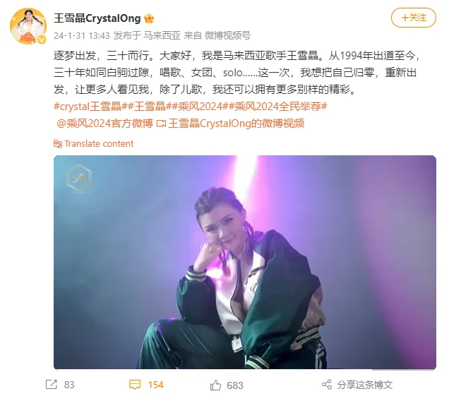 Last but not least, 37-year-old Crystal Ong declared her intentions of participating in “Ride the Wind 2024” with a powerful self-introduction done in rap. The short video showed off the former M-Girls (四个女生) member’s 30-years of experience in the industry and what she had to bring to the variety show if chosen.