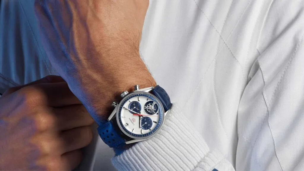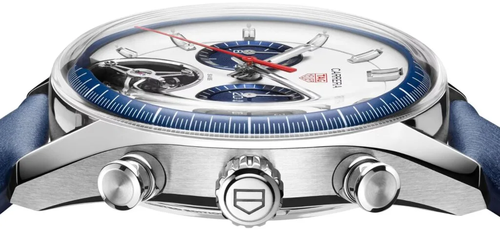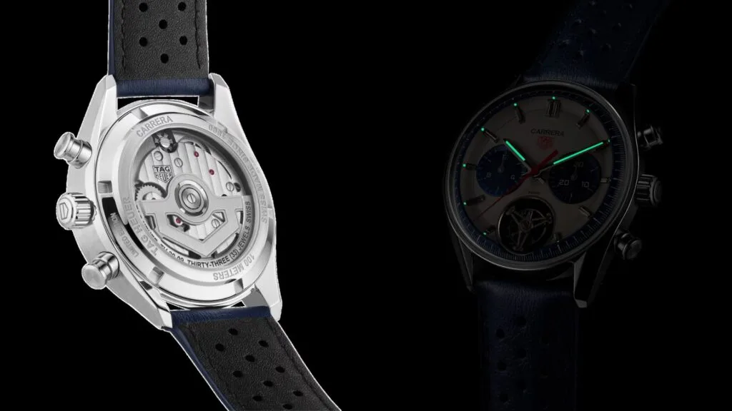 Inspired by the legendary automobile races on the frozen tracks of the alps, the TAG Heuer Carrera Chronograph Tourbillon has been created for competitors, collectors, and car enthusiasts. It embodies Carrera’s emblematic history in the world of racing.
