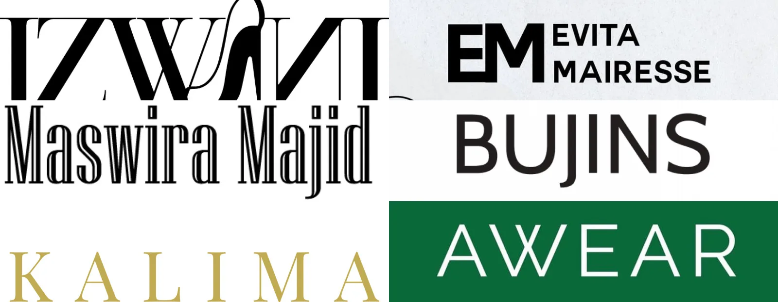 These brands include; AD Fashion & Style, Anas Abdullah, Ash Majid, AWEAR, Bujins, Evita MAIRESSE, GHADEEZ, Hasfitri, HIDA-YEAT, HOOR x S.Ash, Huda Hassan, IZWANI, JAY K, Kalima, Masterpiece by Masrina Abdullah, Maswira Majid, Nusantara Touch, Rebel, Spider, Three Little Ahmads.
