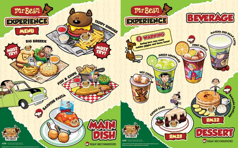 Foodies will also have something to look forward to. Instead of ordinary café meals, the menu has been designed with Mr Bean’s humour and style in mind, featuring themed desserts, specially packaged meals, and drinks that look like they leapt straight out of the cartoon series.