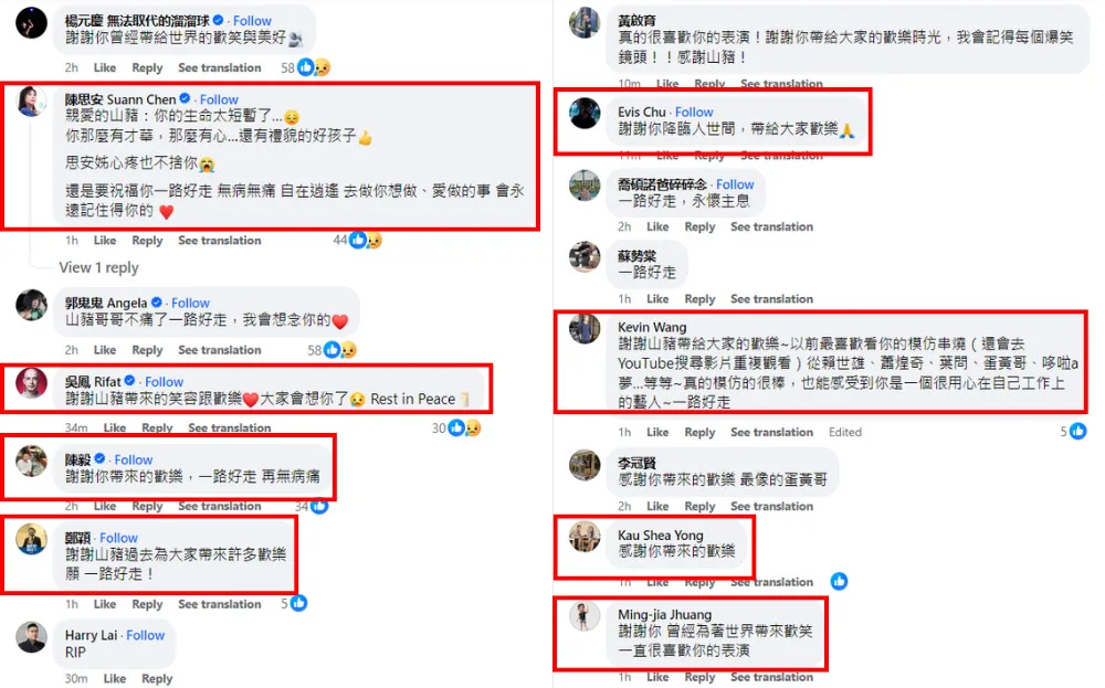 Fans and fellow celebrities flood the late star’s Facebook page to mourn his death and pay their respect. Singer Suann Chen (陳思安) and television personality Rifat (吳鳳) were amongst those who commented on Sandra’s page to send their condolences. Many fans also thanked the comedian for all the laughter and joy he provided during his lifetime and hope he’ll rest in peace.