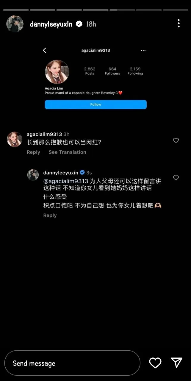 In respond to the comment, Danny fought back by replying, “How could you comment such a thing given that you’re a parent yourself. How would your daughter feel after seeing her mother using these words?”
