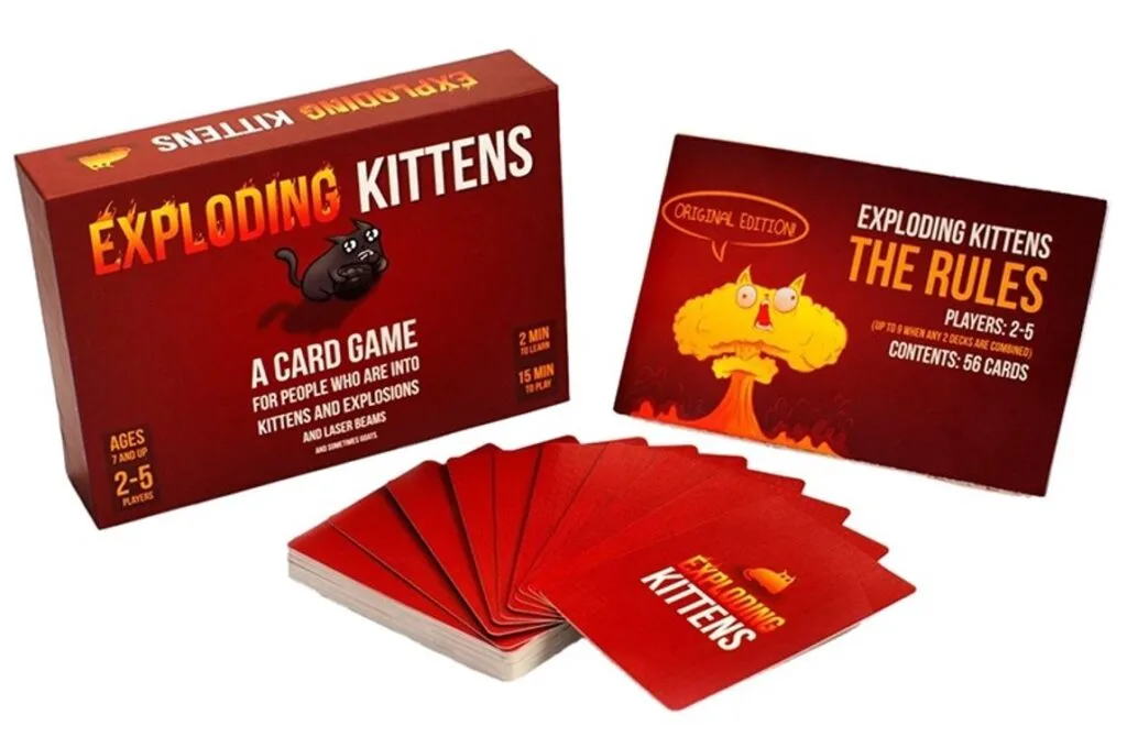 Exploding Kittens is a fun and sociable card game that does NOT include any exploding kittens – trust us. The goal of the game is to dodge or defuse Exploding Kitten cards so they don’t blow you up. If you’re the last remaining player, you win the game.