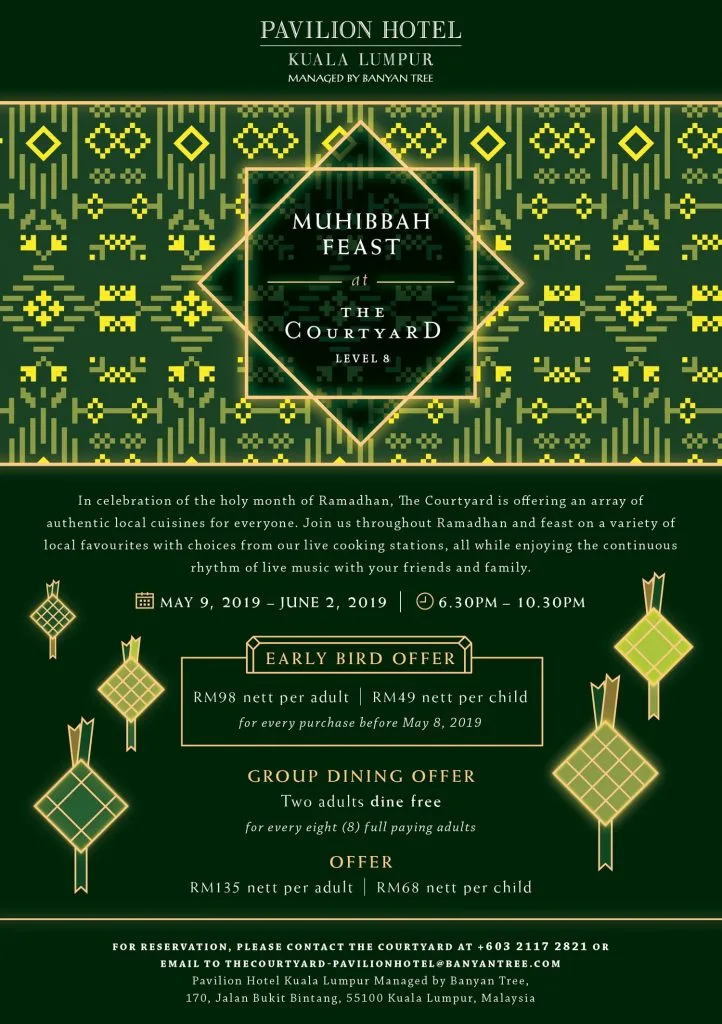 For the coming Ramadhan, Pavilion Hotel Kuala Lumpur managed by Banyan Tree will be holding a Muhibbah Feast buffet at The Courtyard throughout the holy month with plenty of local delicacies that will sure to please your appetite!