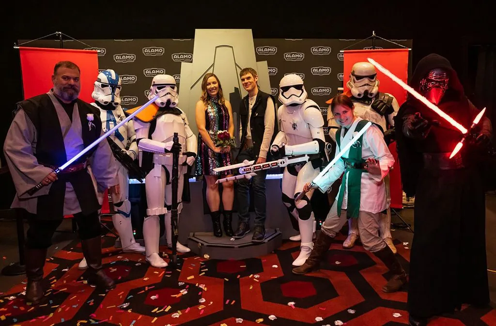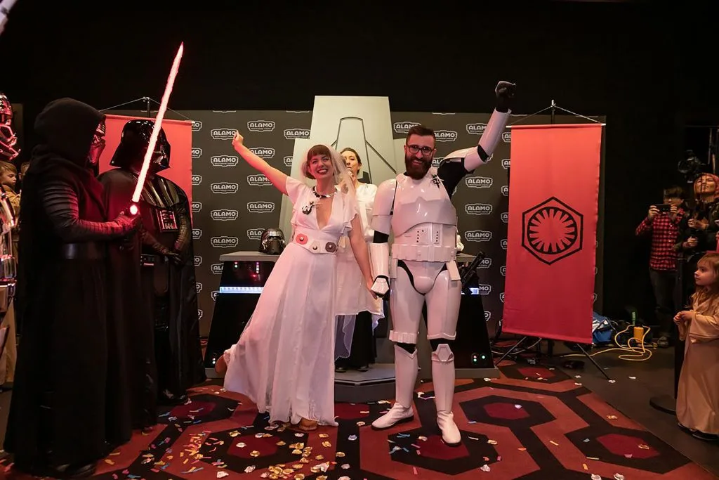 The wedding ceremony was held on Thursday (19th December 2019) at the Alamo Drafthouse Cinema in Austin, Texas, where the couples attended the opening night of their favourite sci-fi franchise in true Star Wars fashion.