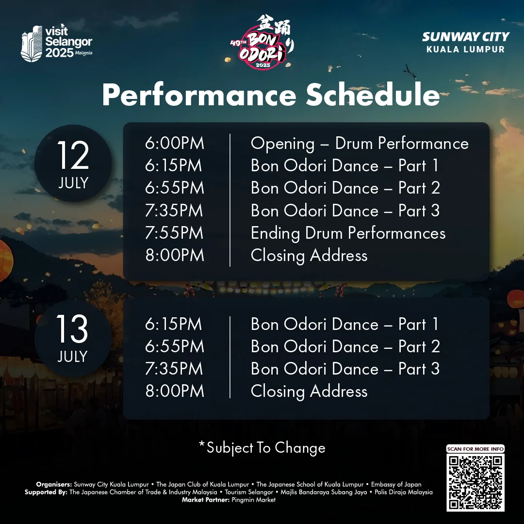 This year, Sunway City Kuala Lumpur is co-organising the 49th Bon Odori 2025 with The Japan Club of Kuala Lumpur (JCKL), The Japanese School of Kuala Lumpur, and the Embassy of Japan, honouring Japanese traditions while fostering cross-cultural appreciation and marking a symbol of the enduring friendship between Japan and Malaysia.