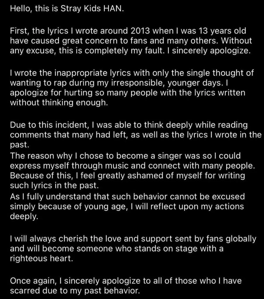 Not long after that, Han posted a lengthy handwritten letter and apologised for his previous mistake. Check out the translated text here: