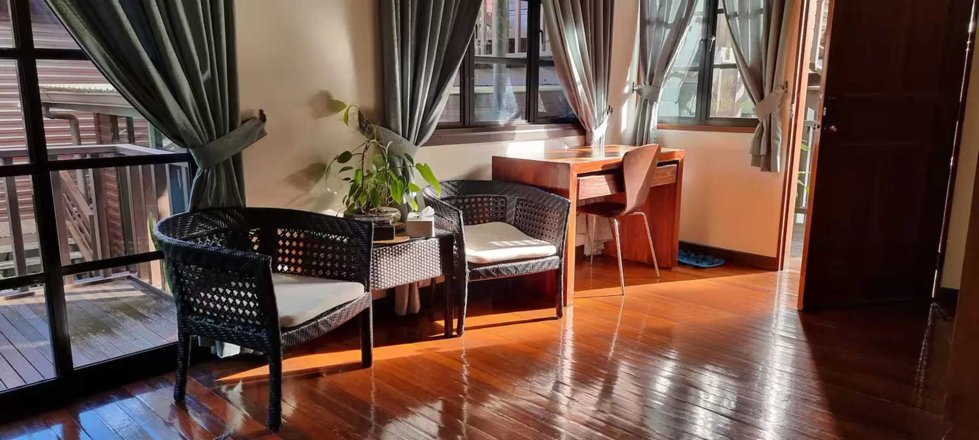 Just a short stroll from Chomel Beach and Keranji Beach, you’ll be steps away from sandy shores and snorkelling spots. After a day of catching waves, unwind on the balcony’s rustic wooden chairs or refresh with a nicely heated shower. With Wi-Fi to stay connected and a serene ambience to help you unplug, this villa strikes the perfect balance for your monsoon-season surfing adventure.