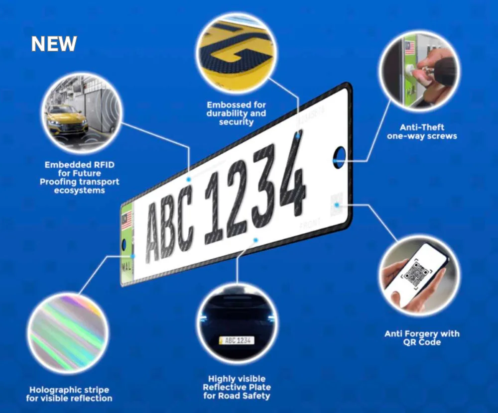 The new number plate will follow the current vehicle registration system, like B for Selangor and V for the Federal Territory of KL. Only new EVs currently require the JPJePlate, but there are plans for all new vehicles to switch to the same number plate system. However, there are no exact dates yet, and older cars aren’t necessarily required to have it. There are also no plans for motorcyclists to have the same number plate. If you’re wondering what makes JPJePlate different from its predecessor, here are the highlight features of the new number plate: