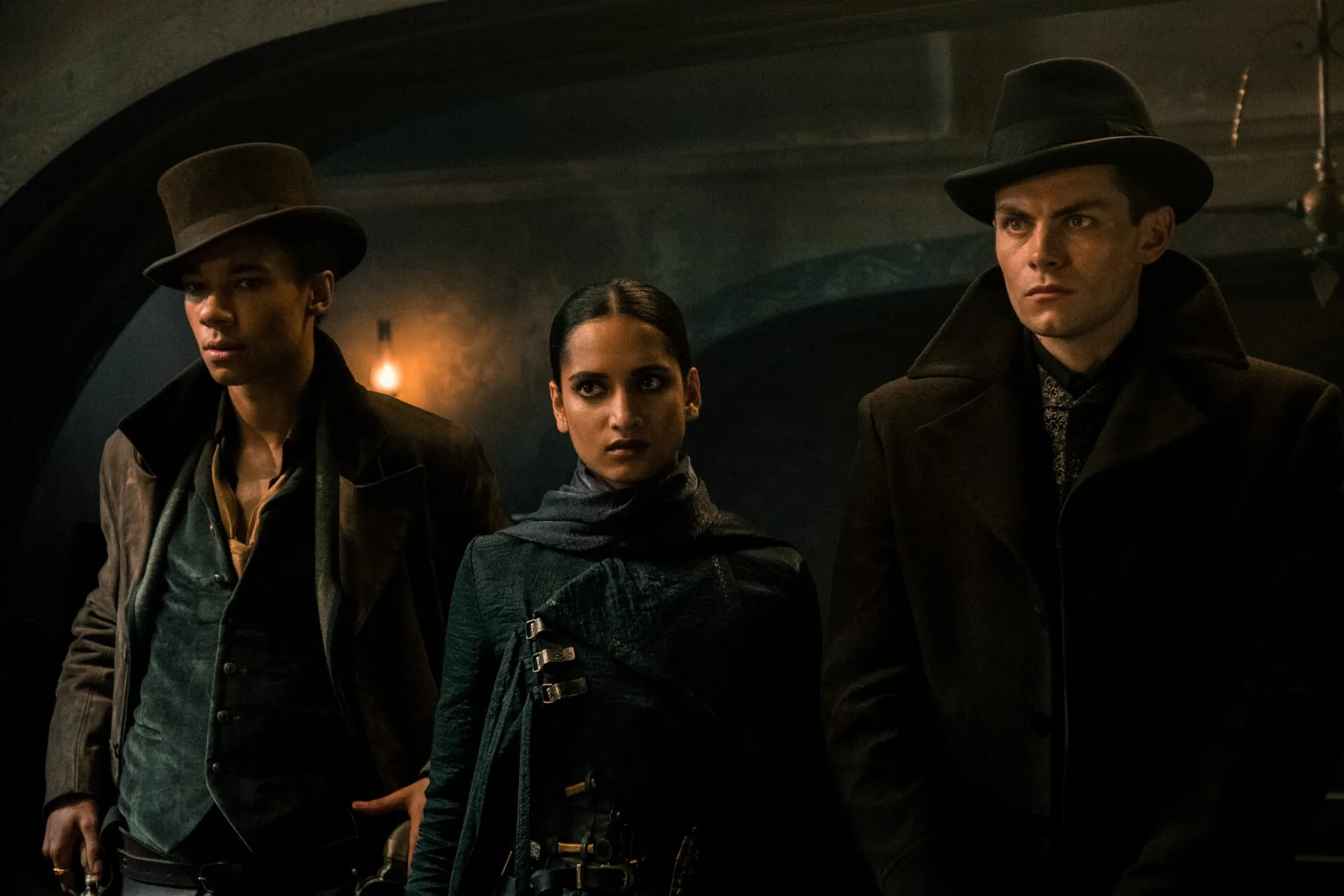 3. Kaz Brekker, Inej Ghafa, and Jasper Fahey in “Shadow and Bone”