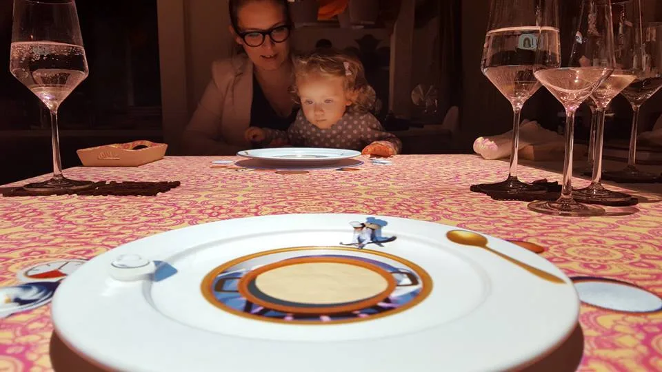 Using 3D table projection, diners will follow the culinary journey of “Le Petit Chef”, a small animated chef, in front of you, as he embarks on the journey of Marco Polo’s expeditions. A menu book will be placed on the table in front of you. The pages are blank but an optical illusion technique will be used to project the little chef on it.