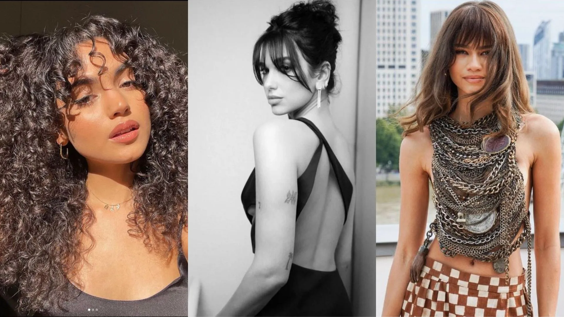 On the forehead, micro fringe is around an inch long. It can be choppy or blunt for an edgy appearance. A prime example is when Zendaya and Olivia Rodrigo both wore micro fringe to the Met Gala. Air dry or flat wrap your micro fringe with a paddle brush to achieve the perfect look. When your fringe is dry, shape it into an ‘X’ to make it lie flat, and then spritz some hairspray to keep it in place.