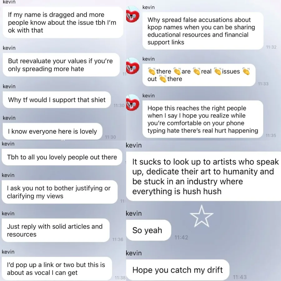 Here’s another incident that was not necessarily recent but has been brought up by netizens online. An old video of Kevin’s livestream resurfaced where he said he wanted to visit Israel after watching a travel documentary. Not long after the livestream, the vocalist made a statement to clarify that he does not support any kind of oppression and has since implicitly shown his support for Palestine.