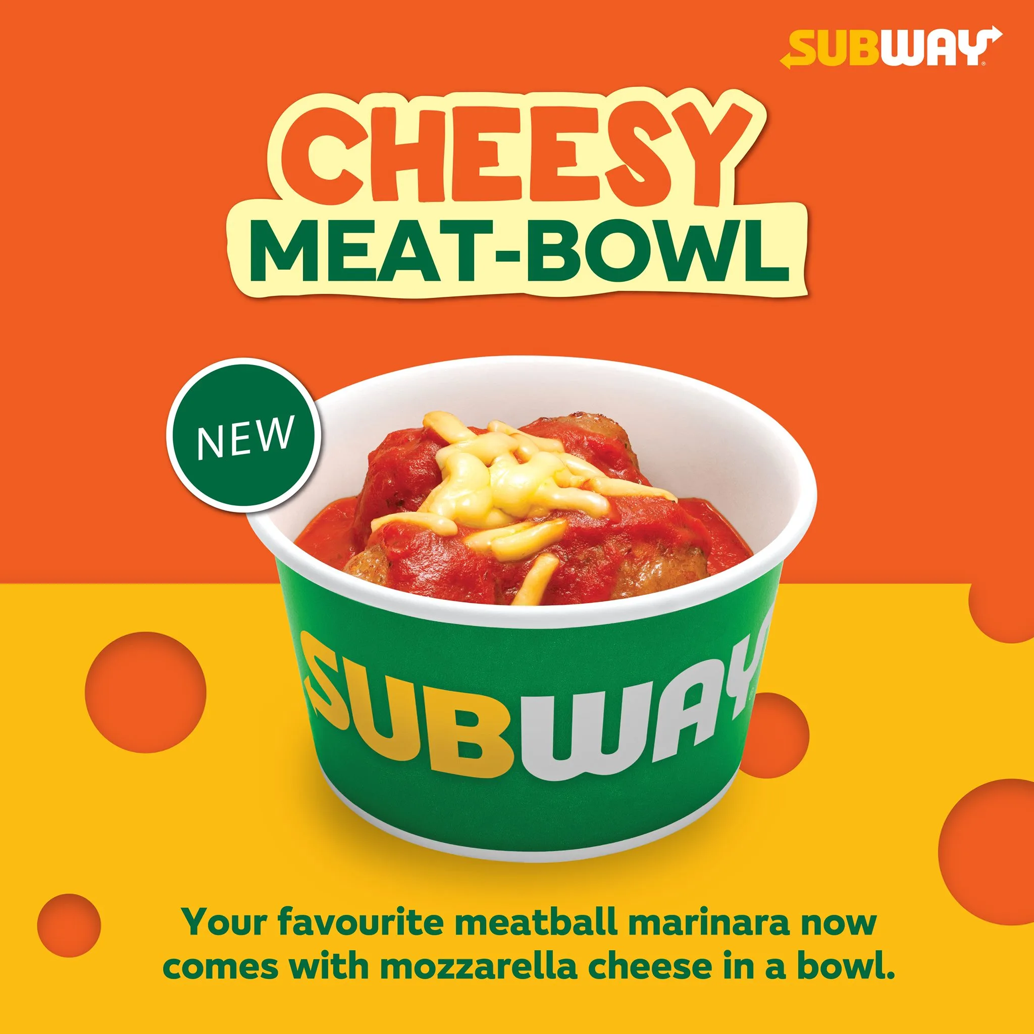 If you can’t get enough of the Meatball Marinara, you can now dig into the fan favourite meatballs with a melted layer of mozzarella cheese in one scrumptious simple bowl with Subway’s Cheesy Meat Bowl!