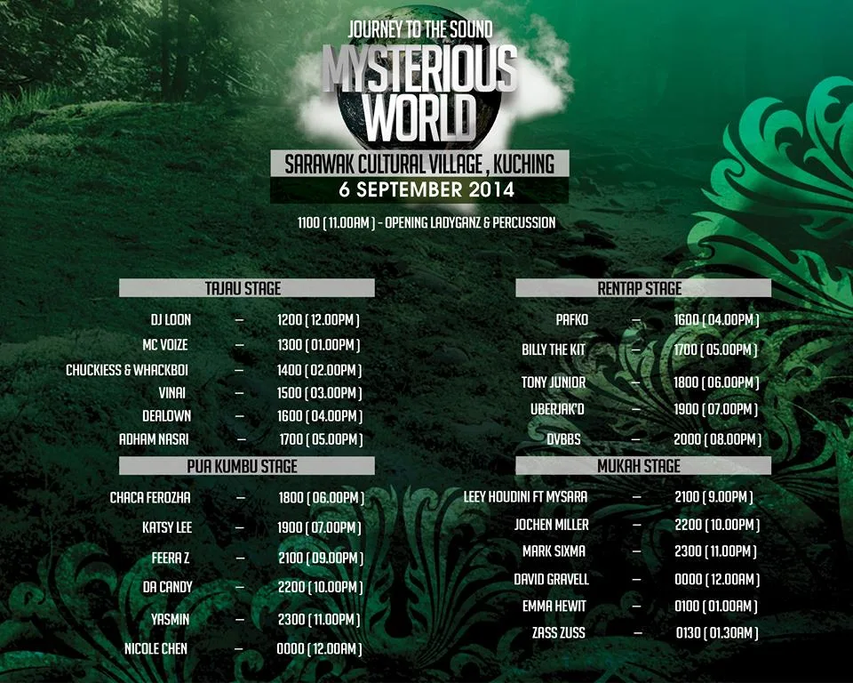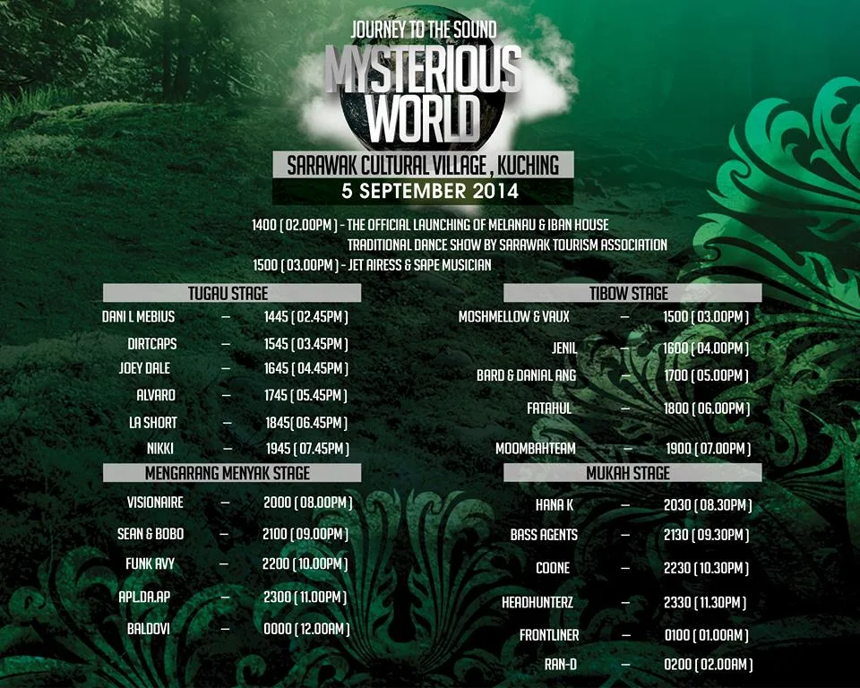 Mysterious World takes place on September 5th & 6th. Set times are as follows: