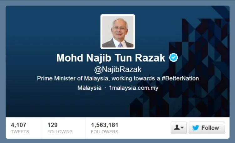 In Meld magazine’s comparison of eight political leaders from the US, Australia, Malaysia, India, Thailand, Japan, Singapore and Vietnam, Malaysian Prime Minister Najib Razak topped the list for having the largest proportion of fake followers on Twitter. As a matter of fact, a recent check using Fake Follower Check showed a whopping 70% of Prime Minister Najib’s 1.5 million followers were fake.
