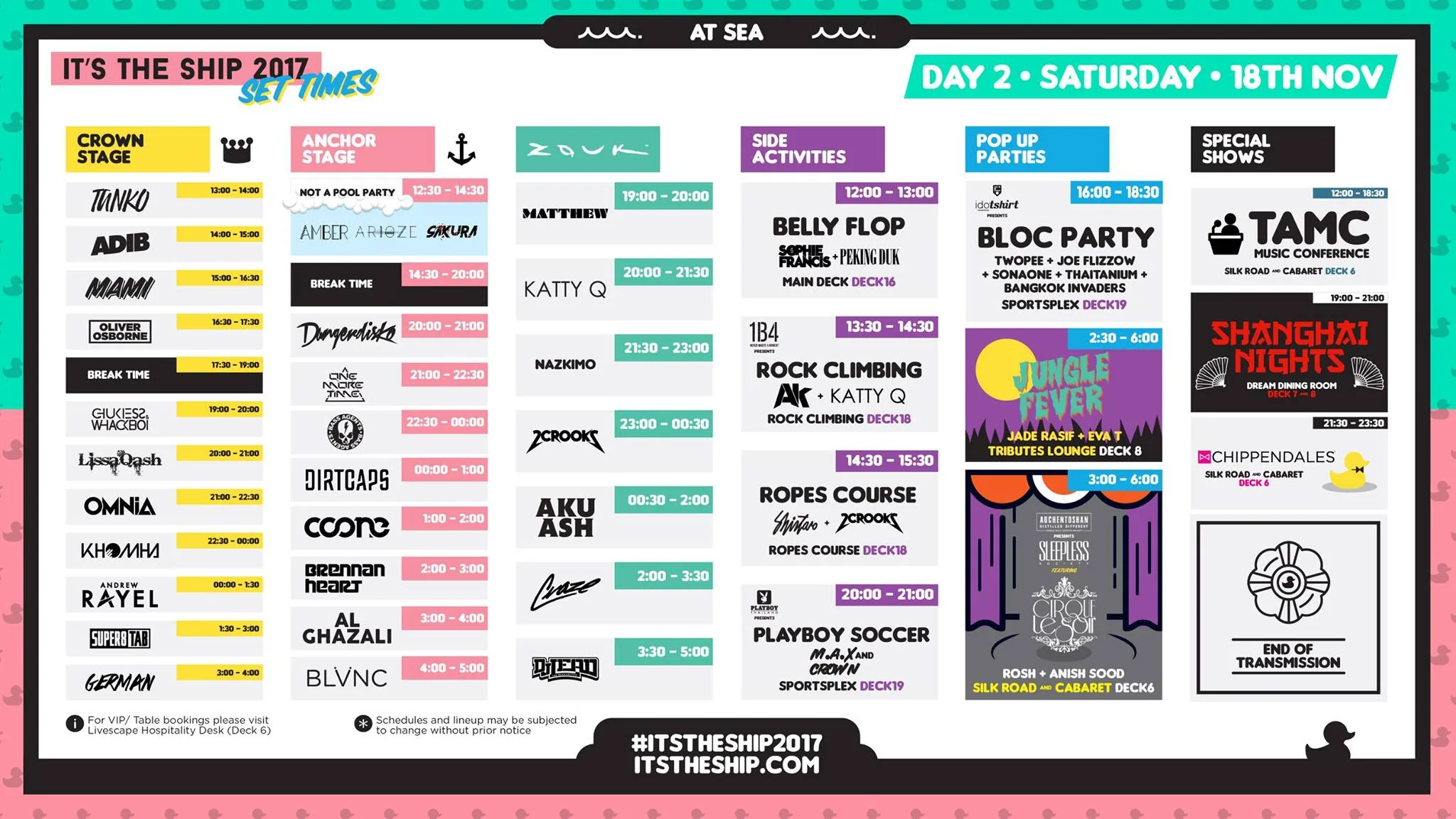 We’re just a couple of sleeps away from this year’s edition of “It’s The Ship“. If this is going to be your first time on the ship, then you’re in luck! Because we’ve taken the liberty to draw up a list of tips (trust us, we’ve been there) to help you not only survive, but thrive on “It’s The Ship 2017”.