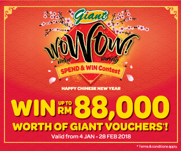 Red envelopes (ang pao or hong bao) are cash gifts given out to kids as well as unmarried adults as a symbol of good luck. Traditionally, ang paos are given from adults to children, and from married couples to singletons. From 1st February onwards, customers who spend a minimum of RM88 in a single receipt at Giant Malaysia will receive one packet of ang paos.