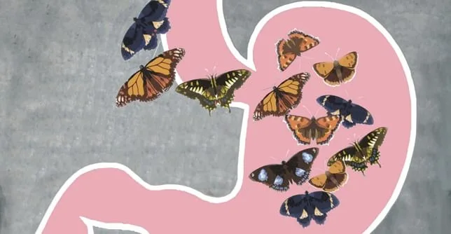The butterflies in your tummy feeling before your important work meeting, or when you see your crush, could possibly be gas. When you get stressed, nervous or anxious, your muscles stiffen up under tension and this causes your digestion to slow down. Stress also makes swallowing food more difficult and may result in swallows containing more air. As a result, there are more farts and burps.