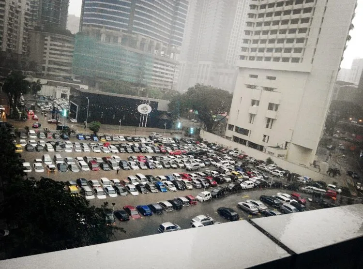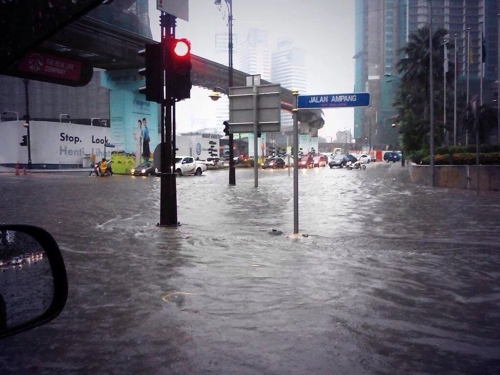 Source: https://forum.lowyat.net/topic/3365898Traffic at Jalan Sultan Ismail and Jalan Ampang came to a complete stop with water rising rapidly, while the pedestrian bridge at the Chan Sow Lin LRT station was closed due to flash floods at Jalan Yaacob Latif. Motorists were left stranded during the evening rush hour after their vehicles were partially submerged in a parking lot along Jalan Pinang.