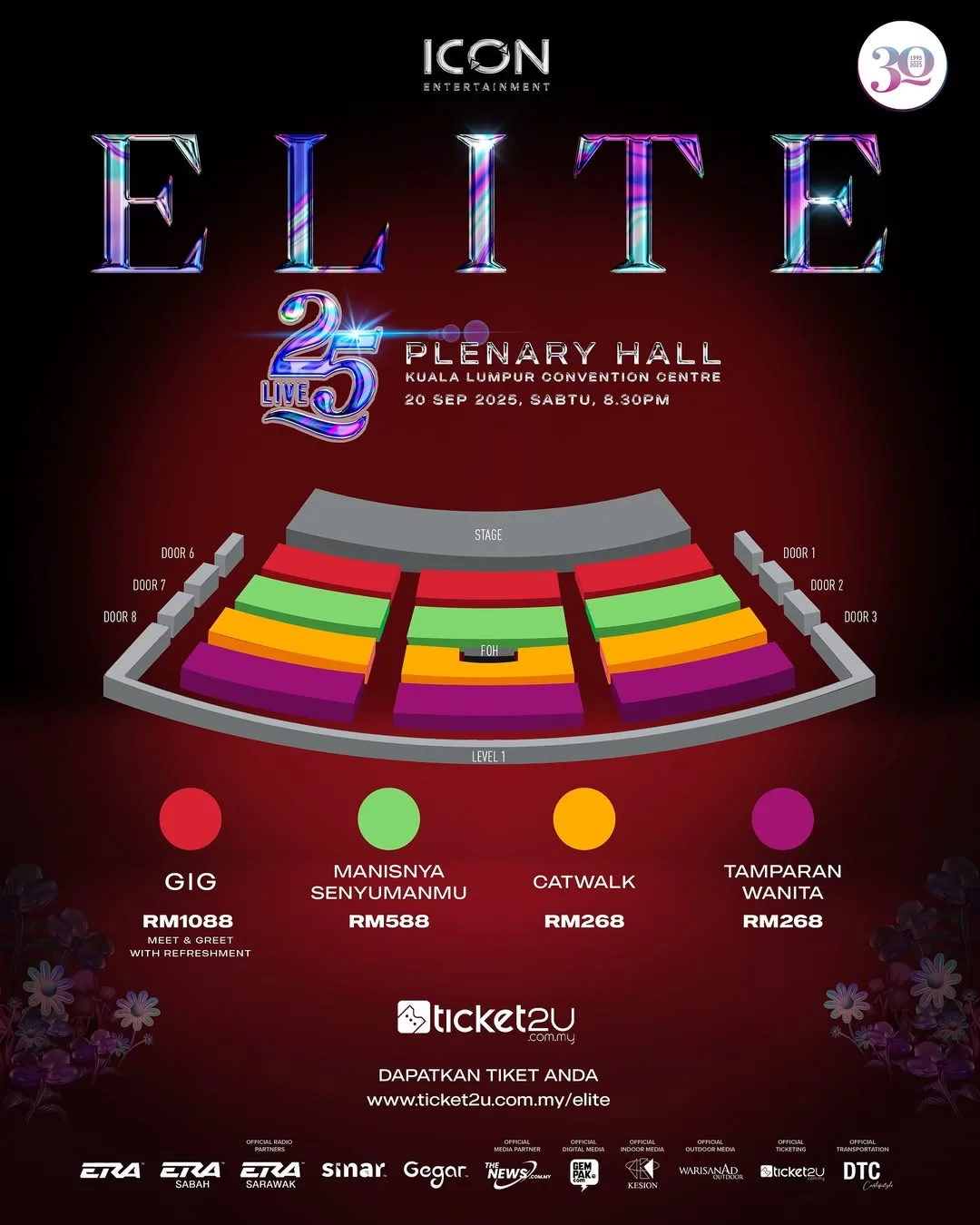 - Ticketing: GIG (RM 1,088), SWEET IS YOUR SMILE (RM 588), CATWALK (RM 268), TAMPARAN WANITA (RM 268)