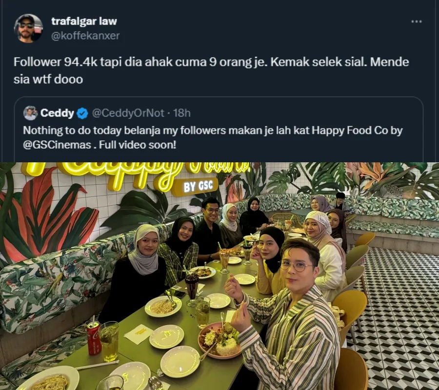 Yesterday (Wednesday, 4th October), Ceddy posted a photo of him and some of his followers at Happy Food Co, a restaurant by Golden Screen Cinemas (GSC). “Nothing to do today so I treated my followers to a nice meal!” he captioned. In the replies, the influencer explained that he had sent out invites on Instagram and a total of 9 people showed up to the hangout that afternoon.